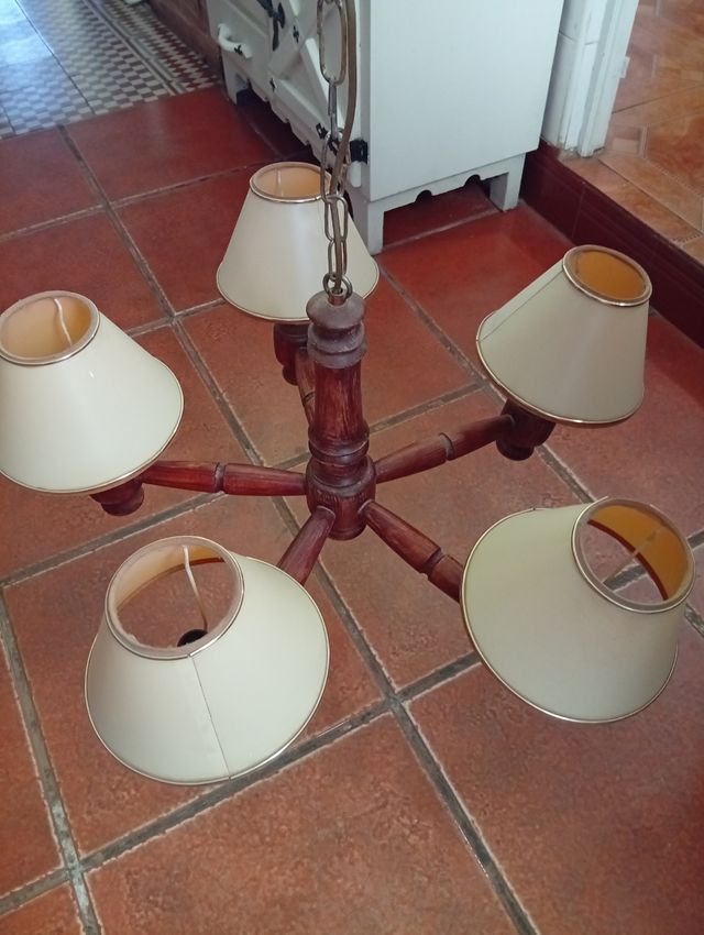 Detalles del productoDos elegante lámpara de techo con estructura de madera y seis tulipas.