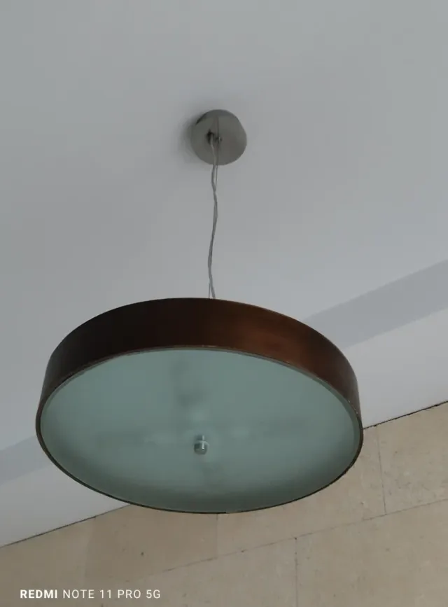 Elegante lámpara de techo con un diseño contemporáneo. - Estructura circular con acabado en madera. - Difusor de luz esmerilado.