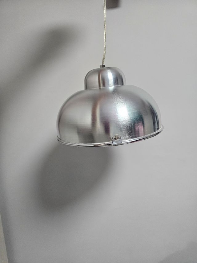 Elegante lámpara de techo con acabado plateado. Su diseño moderno la hace ideal para cualquier estancia. - Material: Metal plateado. - Diseño colgante.
