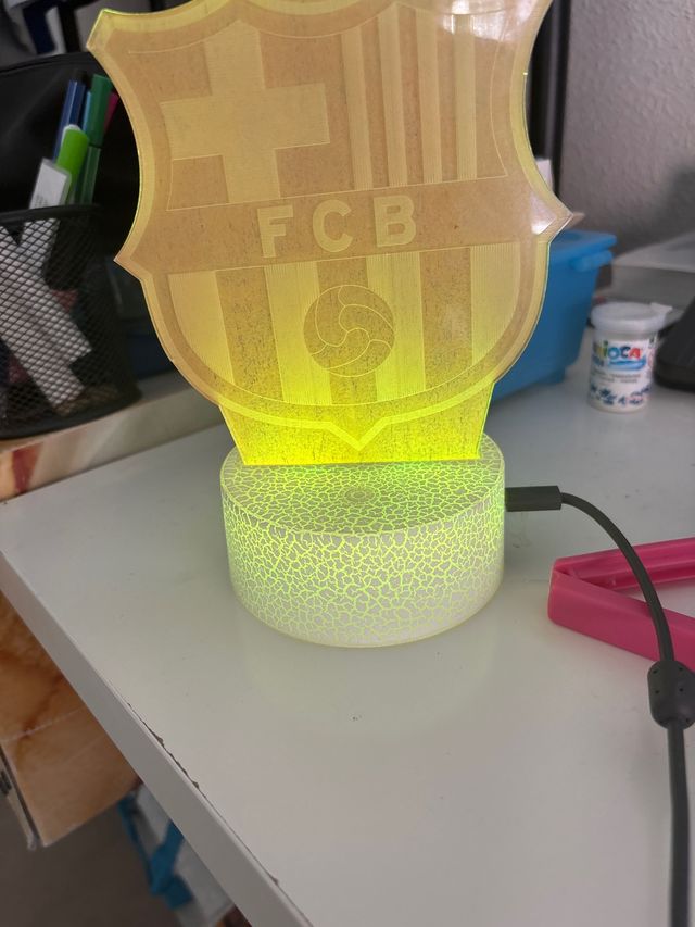 Lámpara decorativa con el escudo del FC Barcelona. - Diseño LED. - Incluye mando a distancia para cambiar el color de la luz. -viene sin caja