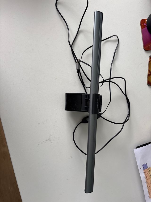 Detalles del productoVendo lampara LED para monitor en buen estado. Es de color gris oscuro, con un diseño elegante y minimalista. Incluye cable USB para conectar a tu ordenador.