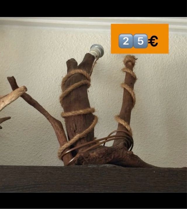 Buen estado · lampara de cepa de viña gallega · Beige y Marrón · Yute y Madera