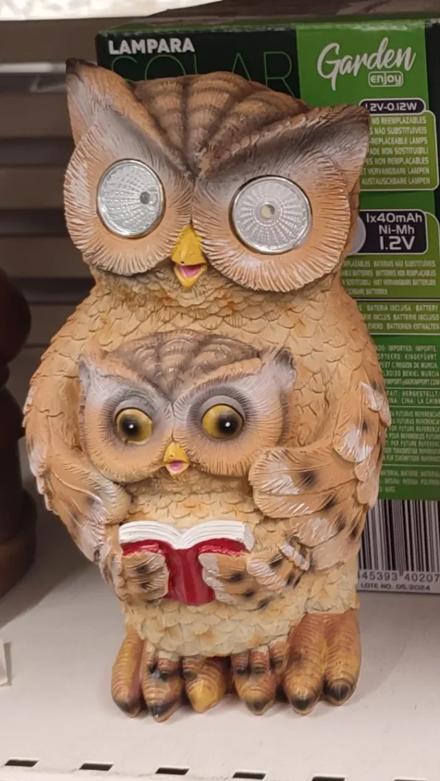 Figura decorativa de búho con energía solar para exteriores. Ideal para jardines o patios. - Funciona con energía solar. - Diseño de búho con cría.