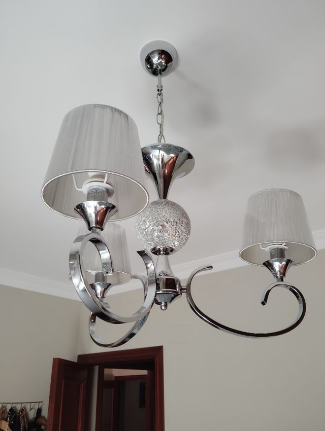 Lámpara techo 3 luces plata