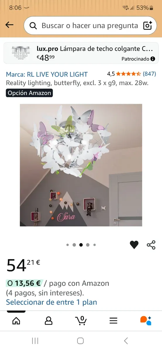 Lámpara de techo con un diseño de mariposas que aporta un toque encantador a cualquier habitación. Ideal para crear un ambiente mágico.