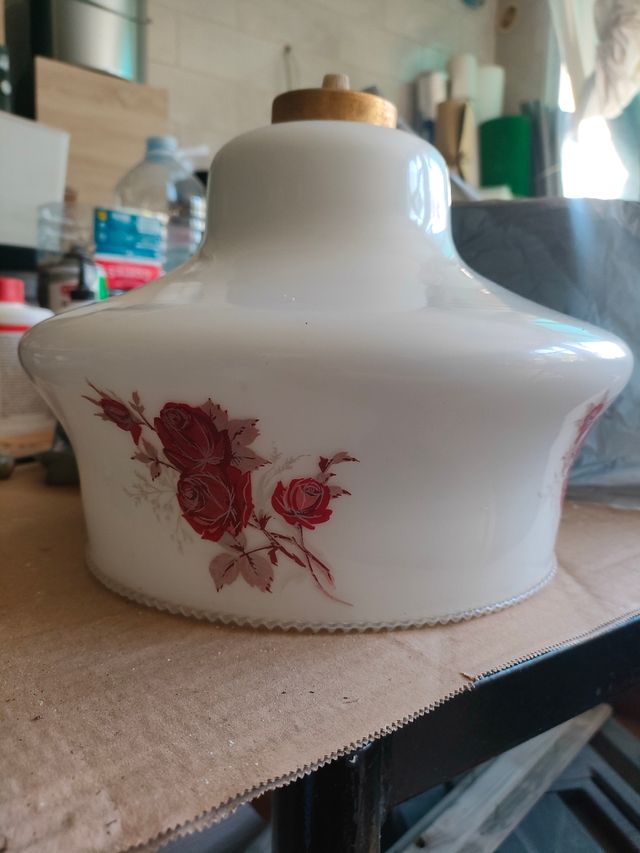 Lámpara de techo blanca con flores rojas en perfecto estado