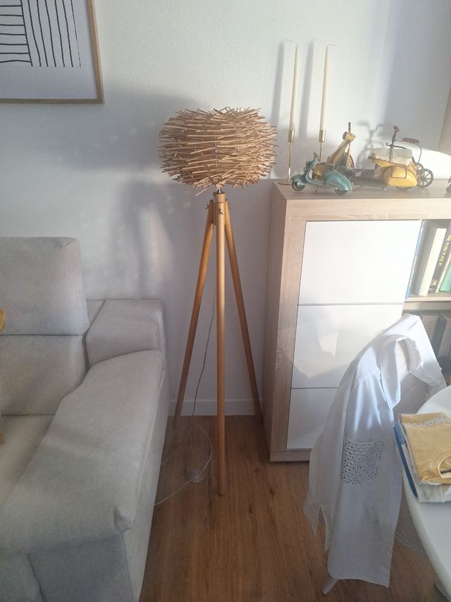 Lámpara trípode mimbre