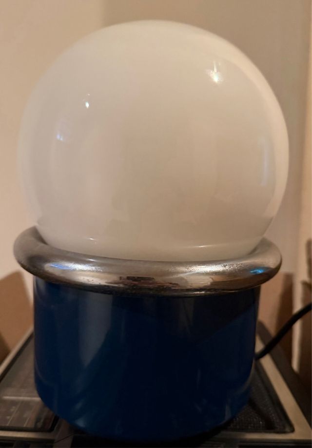Detalles del productoCombinación de lámpara y radio de estilo vintage, original de los años 70. La lámpara tiene una esfera blanca y una base azul con detalles metálicos. Hala Zeist