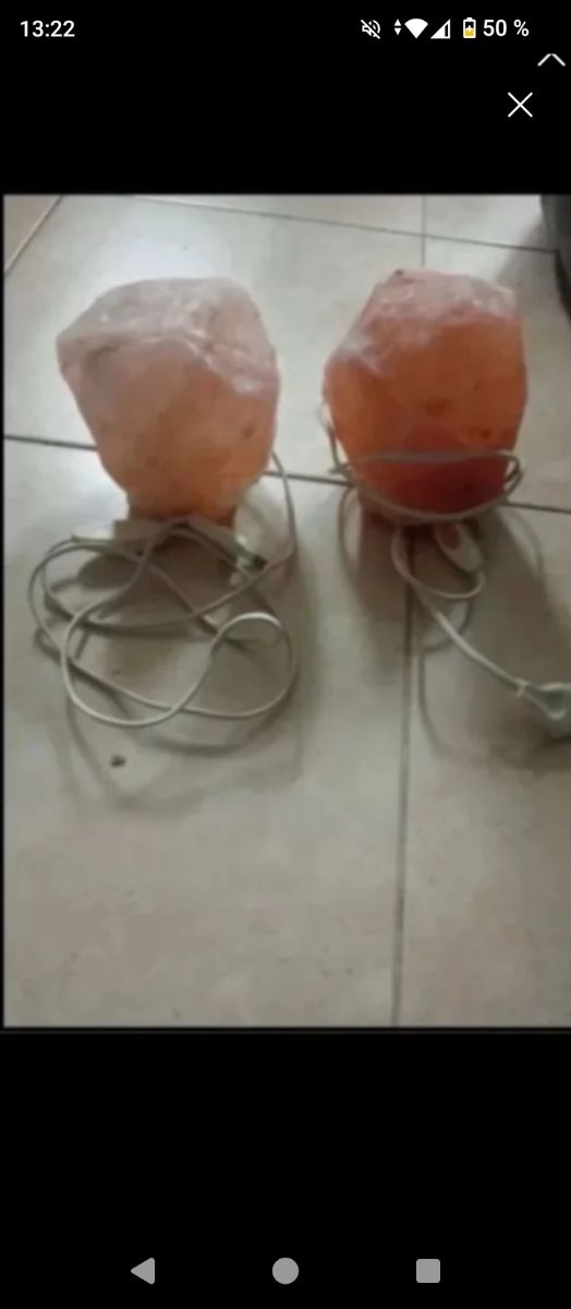 Dos lámparas de sal del Himalaya, cada una con su propio cable y base. - Color rosa anaranjado. - Forma irregular. - Incluye dos unidades.