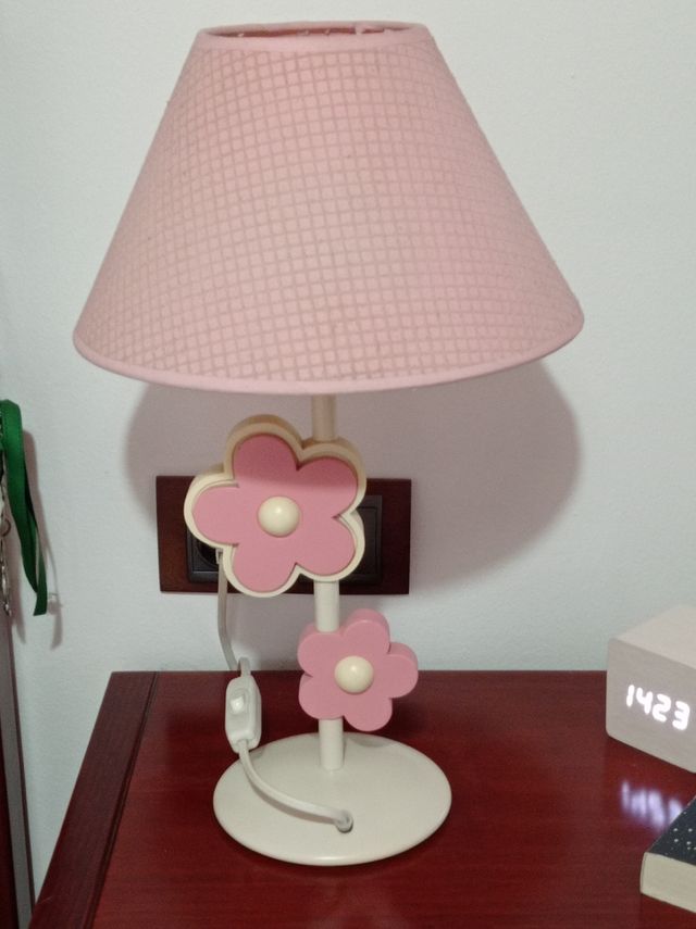 Detalles del productoLámpara de techo y sobremesa infantil colores rosa y beis. Son 2 de techo y 2 de sobremesa. Medidas del producto
