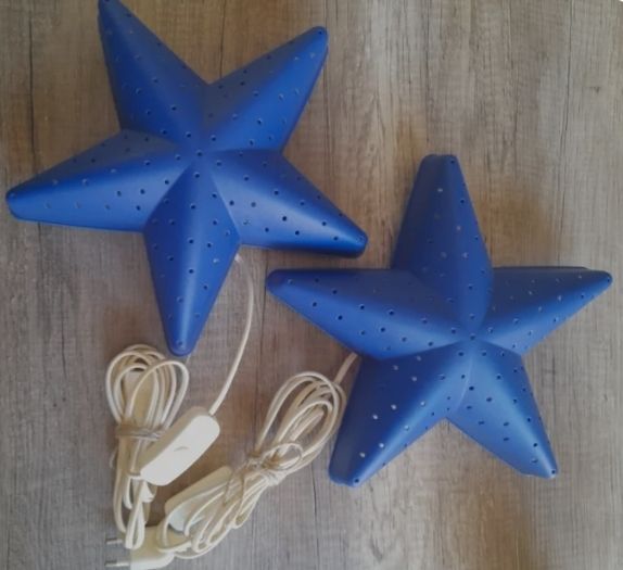 Juego de lámparas infantiles forma de estrella ikea. Plástico duro. Estrella con puntitos para qué salga la luz.