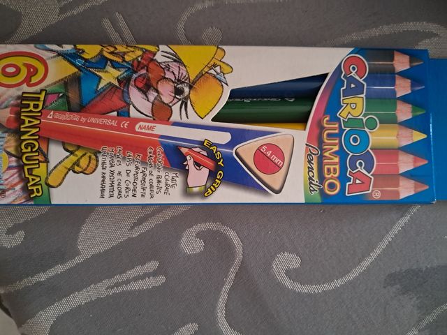 Detalles del productoLápices de colores Carioca Jumbo, en formato triangular. Son 6 unidades en total. Están en su caja original y parecen nuevos.