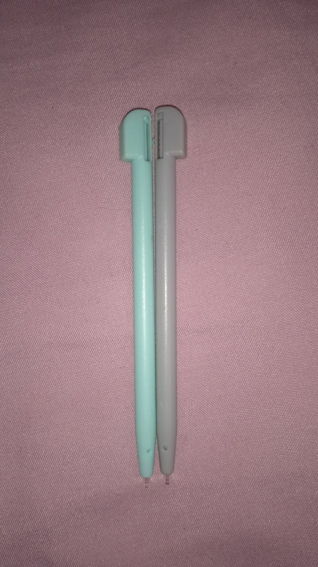 Dos lápices táctiles de repuesto para Nintendo DS. Uno es de color verde menta y el otro gris. SOLO RECOGIDA EN MELILLA