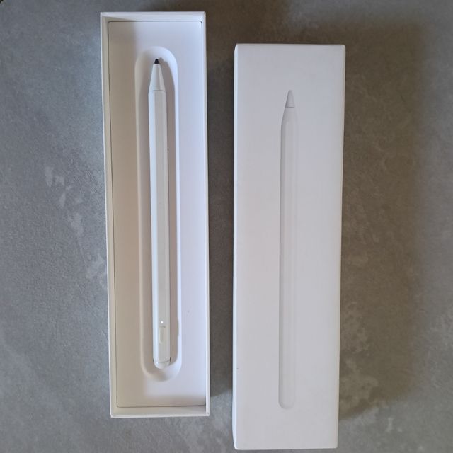 Detalles del productoLápiz óptico digital de color blanco, diseñado para una experiencia de escritura y dibujo precisa.
