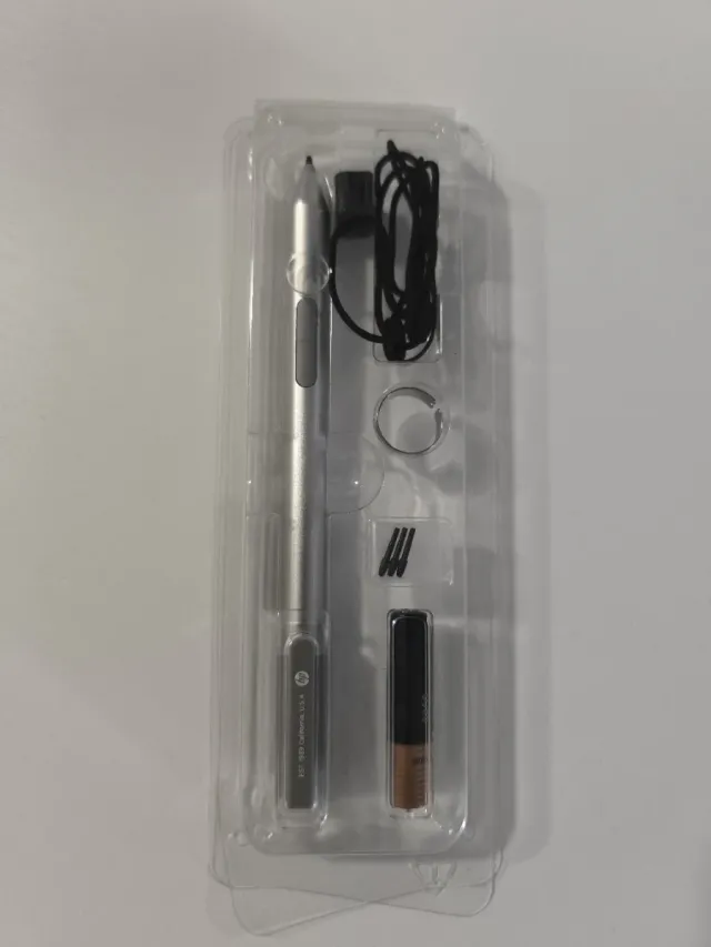 Lápiz óptico stylus de la marca HP. - Diseño en color plateado. - Incluye accesorios para su uso. - Pila de repuesto incluido. Compatible con portátiles HP elite.