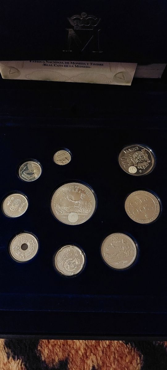 Detalles del productoEstuche de las últimas pesetas en plata compuesto por 9 monedas. Fábrica Nacional de Moneda y Timbre. Todas las monedas son de plata 925.