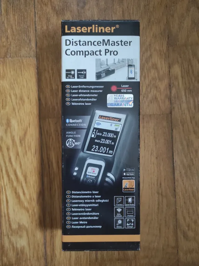 Detalles del productoMedidor láser de distancia Laserliner DistanceMaster Compact Pro. Ideal para mediciones precisas. Conexión Bluetooth Función de ángulo 360°. Láser 650 nm. Rango de medición: 0.1 - 50 m. Precisión: ± 2 mm. Funciona de longitud, superficie y volumen, con indicación de Max y min, función de ángulos, pantalla LCD