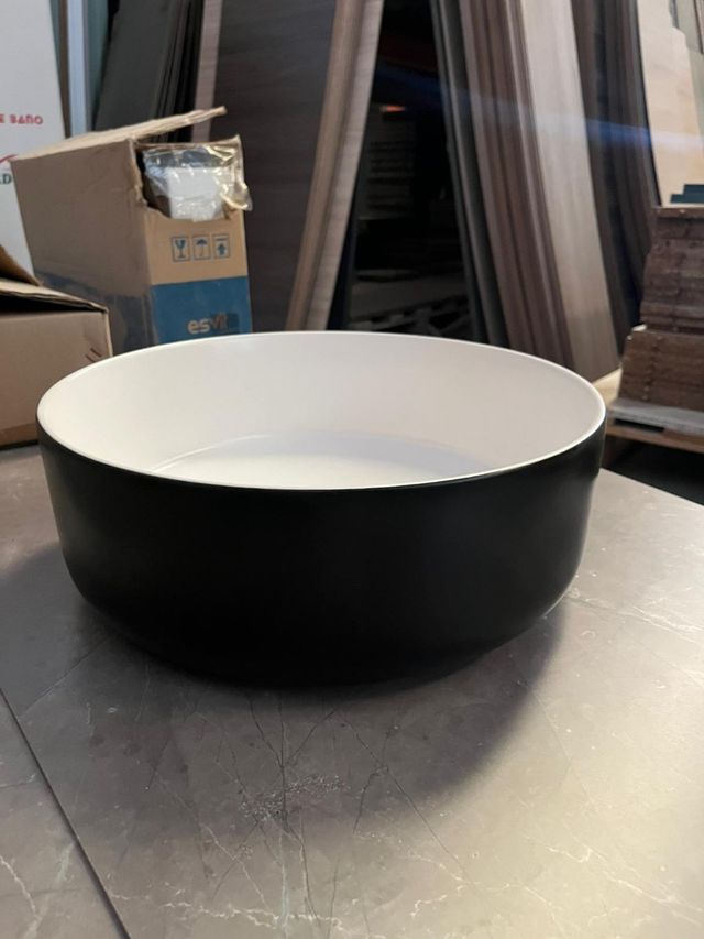 Lavabo de cerámica bicolor con un diseño moderno y elegante. - Color exterior negro. - Interior blanco. 36cm
