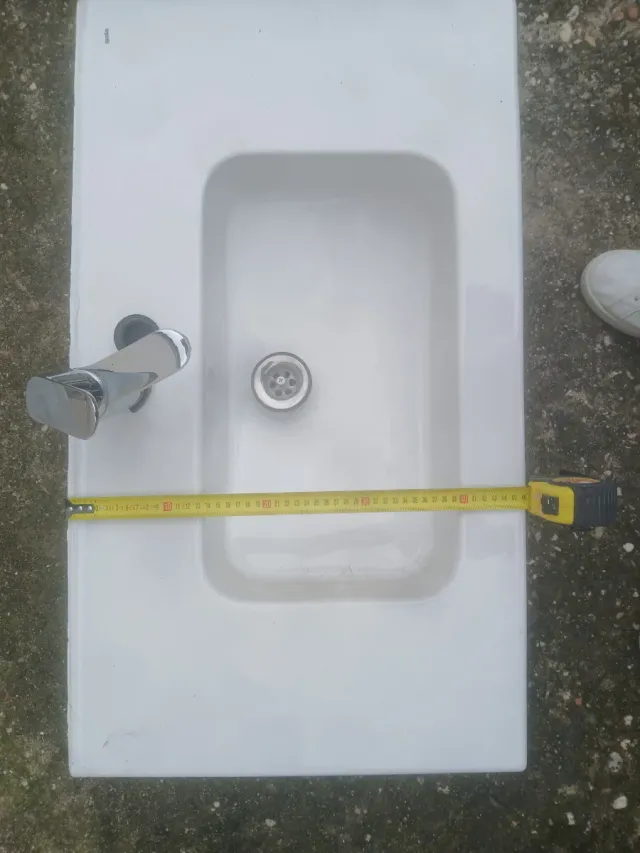 Lavabo de cerámica blanca con grifo. - Diseño moderno y funcional. - Incluye grifo cromado.