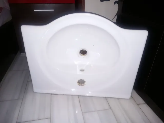 Lavabo de baño de cerámica blanca. - Diseño moderno y elegante. - Amplia cubeta. - Agujero para grifería.