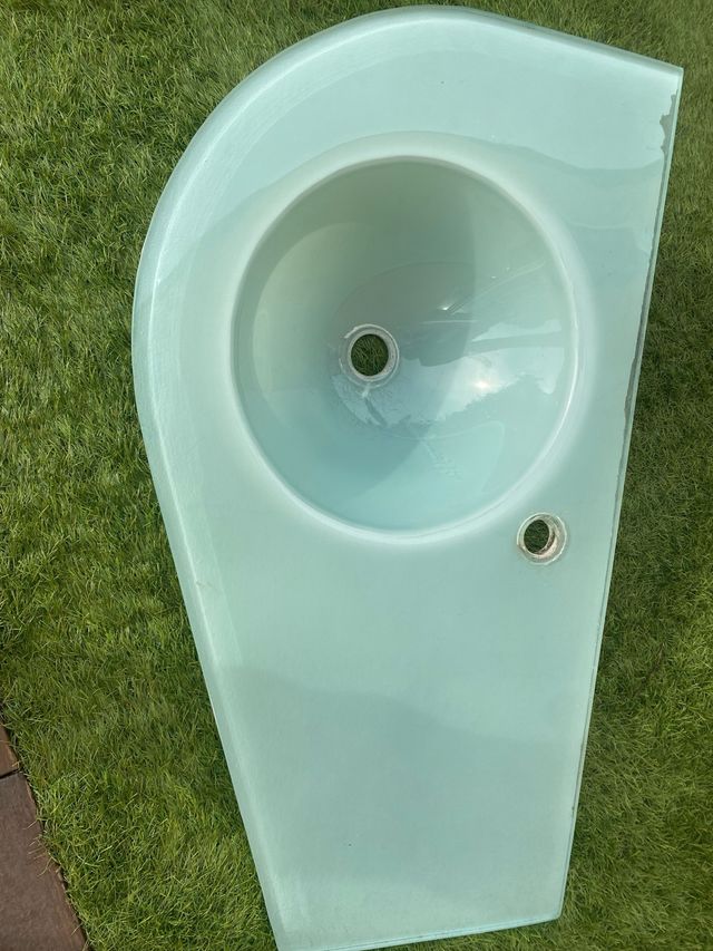 Pica de color menta, fabricado en cristal. - Forma curva. - Agujero para grifo. - Ancho 91cm -Largo 50cm - También se vende grifo, si quisieran.