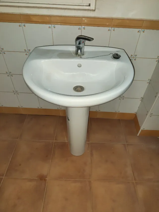 Detalles del productoLavabo de pedestal de cerámica blanca. Un diseño clásico y funcional para tu baño.