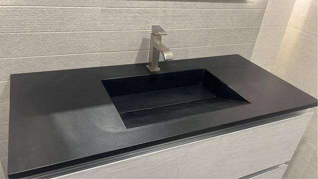 Lavabo de diseño moderno en piedra negra. Lo vendemos con el grifo.