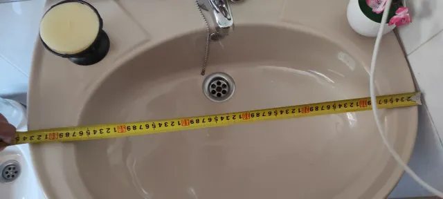 Detalles del productoLavabo de baño en color beige, con su pie a juego.