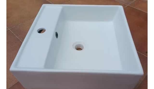 Lavabo y pila de diseño moderno, ideal para baños o cocinas. Su acabado liso facilita la limpieza. - Forma cuadrada. - Agujero para grifo. - Agujero para desagüe.