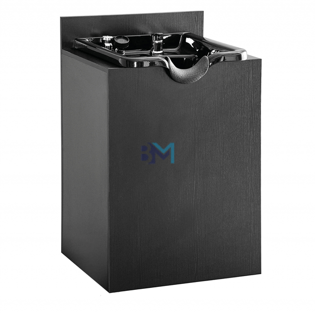 Lavabo de peluquería con mueble de madera. - Diseño moderno y elegante. - Acabado en color negro. - Incluye grifería.