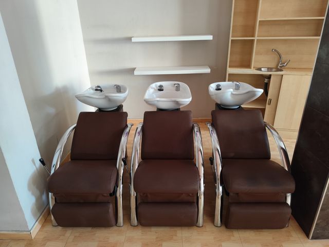 Disponemos de 2 unidades de lavacabezas con sillón en tonos marrones en muy buen estado, de primera marca.Pre cio por unidad.