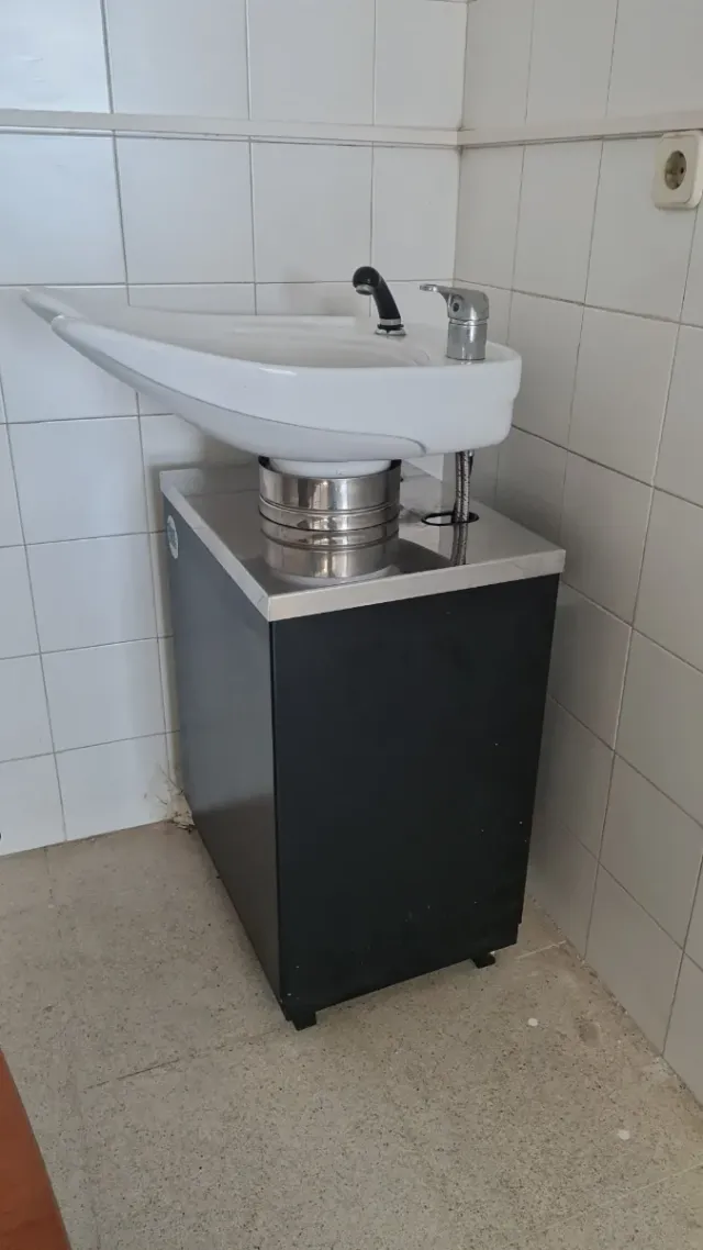 Lavacabezas profesional para peluquería. - Diseño ergonómico. - Base negra. - Acabado en acero inoxidable.