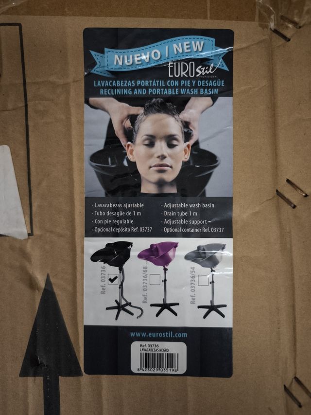 Lavacabezas portátil en negro, nuevo sin estrenar