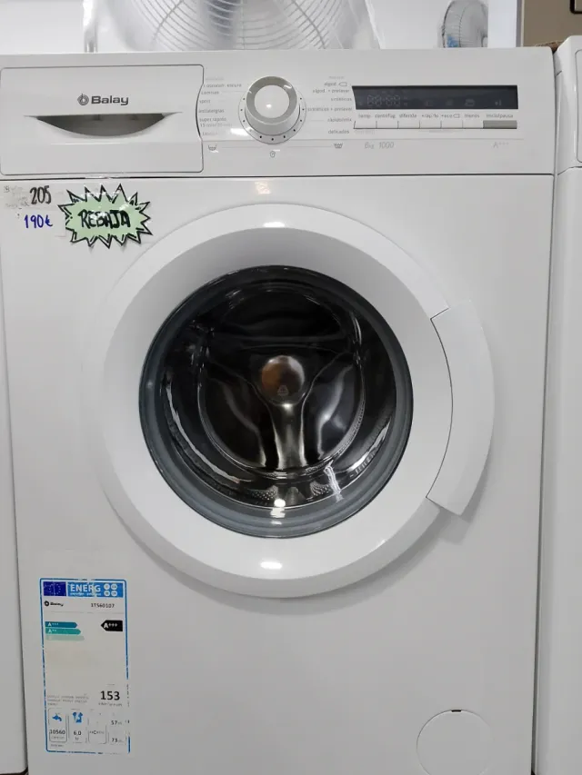 Detalles del productoLavadora de carga frontal Balay con capacidad de 6kg y 1000 revoluciones por minuto.