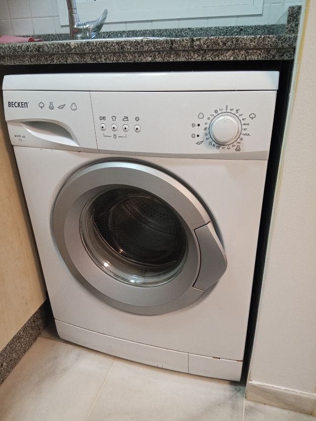 Lavadora de carga frontal marca Becken. - Capacidad de 7kg. - Color blanco. - Panel de control con programas y selector de temperatura.