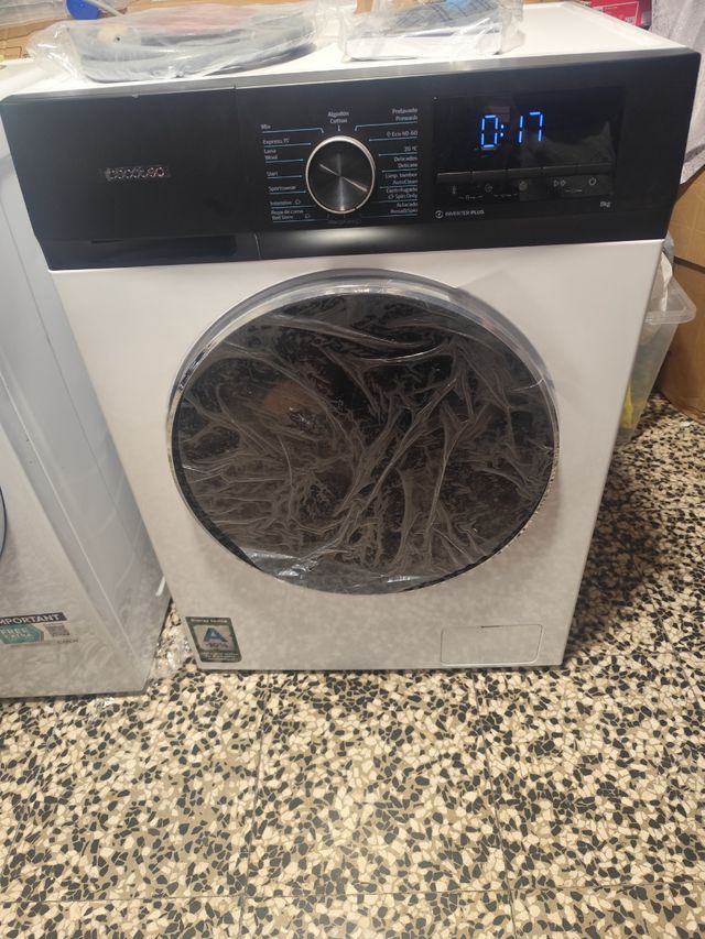 Detalles del productoLavadora de carga frontal en color blanco. Cuenta con una capacidad de 8kg y tecnología Inverter Plus.