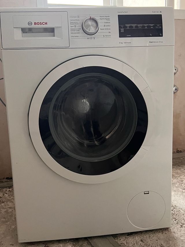 Detalles del productoLavadora Bosch Serie 6 en perfecto estado. Es una lavadora de carga frontal con una capacidad de 8kg y una velocidad de centrifugado de 1400rpm.