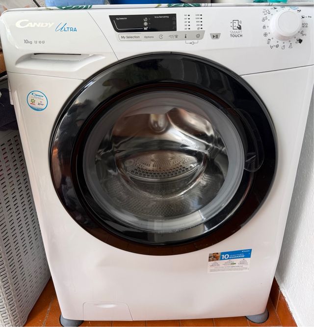 Detalles del productoLavadora Candy de carga frontal con capacidad de 10 kg y 1200 revoluciones por minuto.