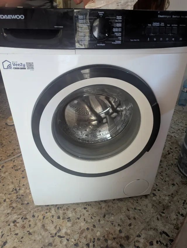 Lavadora Daewoo con capacidad de 9 kilos. - Color blanco. - Diseño frontal. - Panel de control digital. - Completamente nueva solo le hace falta quitarle el polvo