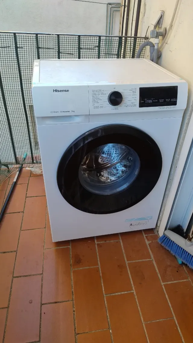 Detalles del productoLavadora Hisense de carga frontal con capacidad de 9 kg. Diseño moderno en color blanco.