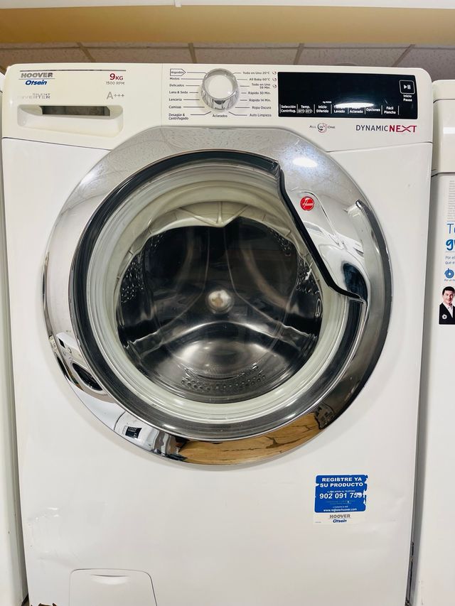 Lavadora de carga frontal Hoover Otsein. - Capacidad de 9 kg. - Velocidad de centrifugado de 1500 RPM. - Eficiencia energética A+++.