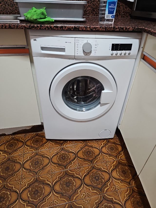 Lavadora blanca de carga frontal OK. Carga de 7KG - Modelo DWM 1720 A2. - Diseño moderno y compacto. - Panel de control con selector giratorio y pantalla digital.