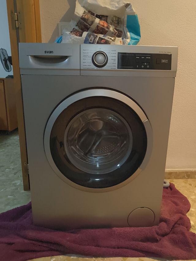Detalles del productoLavadora de carga frontal en color plateado *(precio negociable)*.
