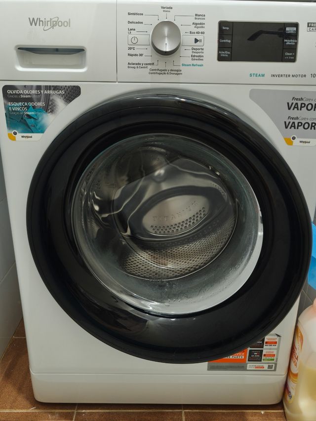 Lavadora de carga frontal Whirlpool. - Capacidad de carga de 10 kg. - Motor Inverter. - Tecnología Steam Refresh para eliminar olores y arrugas. - Función FreshCare+.