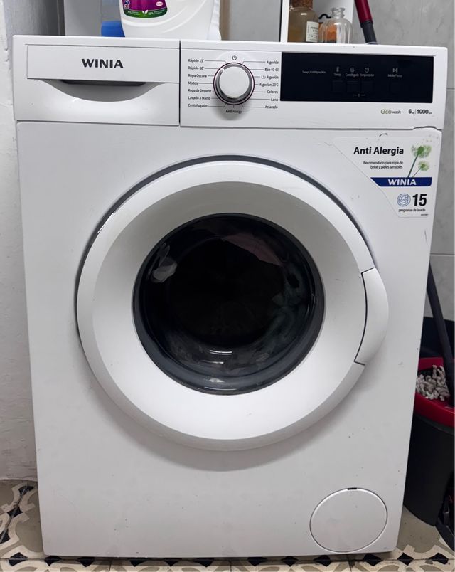 Detalles del productoLavadora de carga frontal marca WINIA en color blanco. Cuenta con un programa Anti Alergia recomendado para ropa de bebé y pieles sensibles. Dispone de 15 programas de lavado.