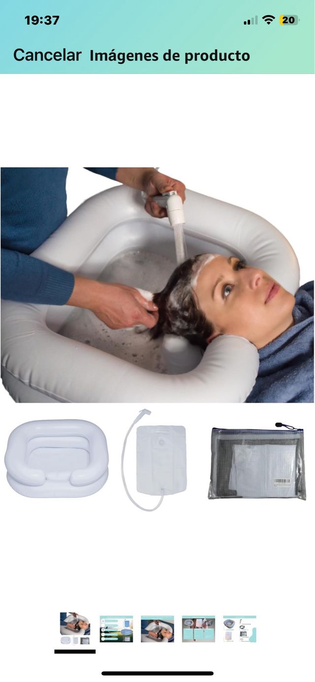 Lavacabezas Portatil con bolsa de agua y ducha, Champú hinchable para cabello, lavabo inflable para casa, personas discapacitades, embarazadas, mayores con Estuche