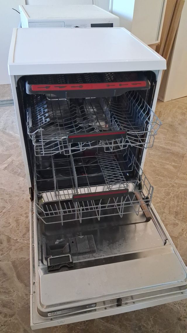 Detalles del productoLavavajillas de la marca AEG en color blanco. Interior en acero inoxidable, cuenta con tres bandejas interiores para la colocación de la vajilla.