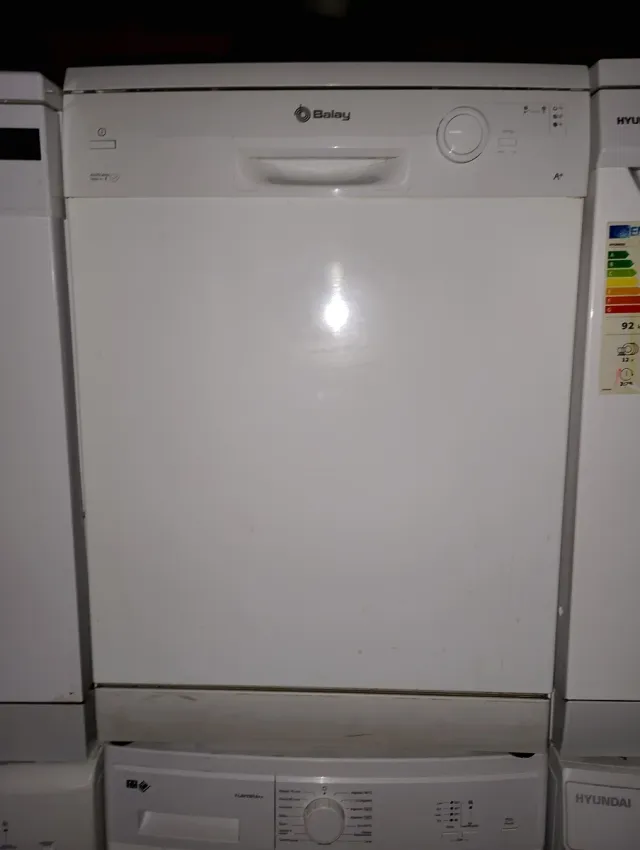 Lavavajillas de la marca Balay en color blanco. - Diseño frontal. - Panel de control superior.