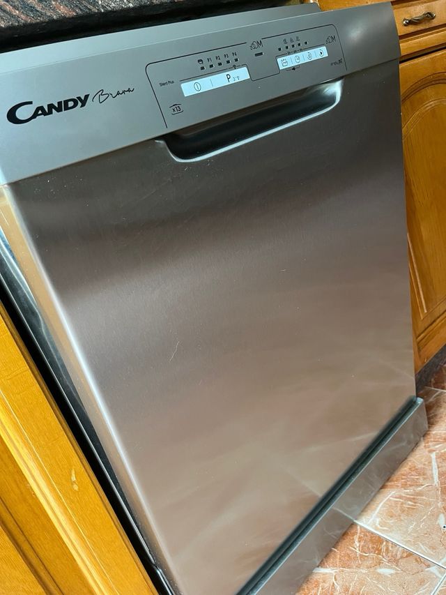 Detalles del productoLavavajillas Candy Brava Silent Plus en acabado de acero inoxidable.