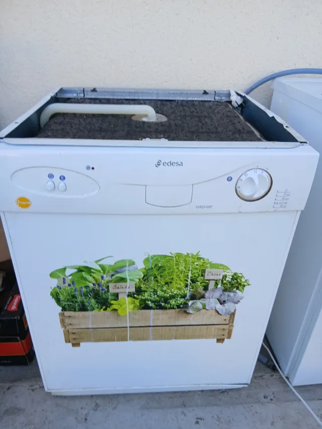 Detalles del productoLavavajillas de la marca Edesa con un diseño frontal decorado con un jardín de hierbas aromáticas.